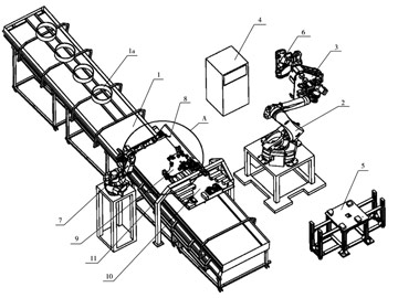 基于機(jī)器人技術(shù)的汽車塑料油箱修邊系統(tǒng)是由抓取機(jī)器人、條碼機(jī)、修邊臺、修邊機(jī)器人、稱重臺等幾個主要部件構(gòu)成,實現(xiàn)了自動從吹塑機(jī)取出吹塑完成帶飛邊的油箱