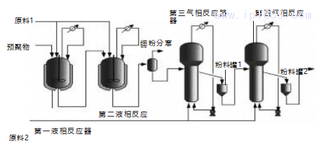 現(xiàn)有常規(guī) PP工藝中, HypolPP工藝的平均停留時(shí)間最長(zhǎng),較長(zhǎng)的反應(yīng)時(shí)間可以充分釋放催化體系的活性,有利于調(diào)控各反應(yīng)釜的工藝參數(shù),可以合理分配產(chǎn)品MFR和乙烯共聚性能,有利于剛韌平衡和無規(guī)聚合的匹配。圖1為HypolPP工藝示意 。