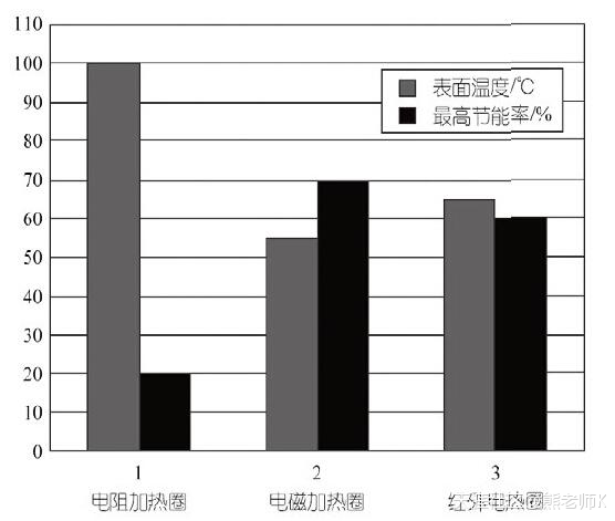 從圖示可以看到電磁加熱圈的表面溫度以及相對普通加熱圈節(jié)能率都有優(yōu)勢,但是為什么現(xiàn)在是紅外節(jié)能加熱圈占據(jù)了節(jié)能加熱圈市場的主導(dǎo)地位呢?接下來詳細分析。