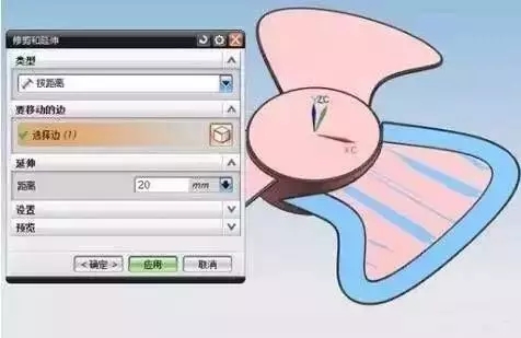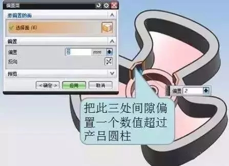 2、風扇的前后模面是兩個平行的面,所以分型面以其中一個面偏置即可,如下圖