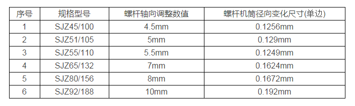 不同規(guī)格錐雙主機(jī)螺桿軸向竄動(dòng)1mm螺桿機(jī)筒徑向變化尺寸: