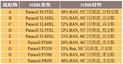 高交聯(lián)中等粘度NBR級用量變化對混配物的影響