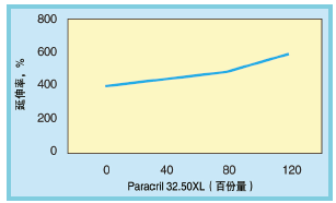 硬度、伸長率與拉伸性能也隨著120份量的最高NBR用量而變化。這為優(yōu)化NBR改性PVC性能提供一個非常廣的化合物配方設(shè)計窗口。