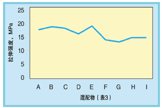 圖3表明混配物1~4的硬度值。圖4表明混配物1~4的延伸率,圖5表明混配物1~4的伸長值。