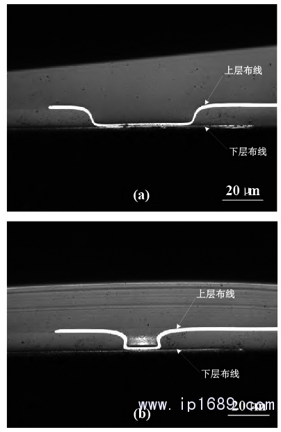 圖 9 50 μm(a)和 20 μm(b)通孔互連剖面顯微圖片