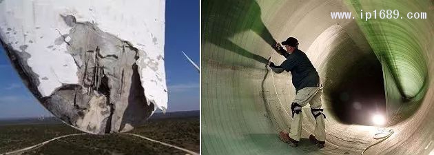 風(fēng)力發(fā)電機(jī)災(zāi)難性損壞(左)和工廠修復(fù)(右)。