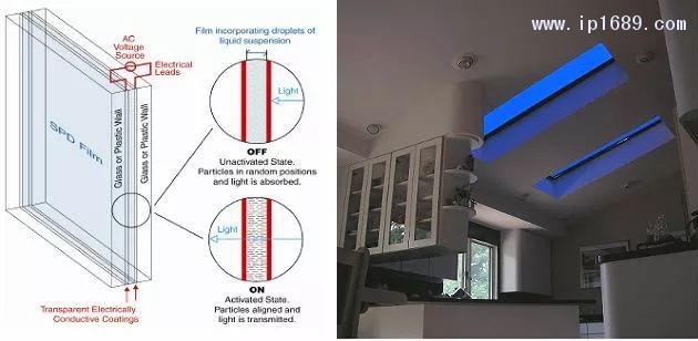 SPD層壓結(jié)構(gòu)(左)和建筑天窗的智能改造(右)