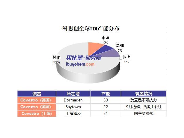 據(jù)悉,全球聚氨酯巨頭科思創(chuàng)近日向客戶發(fā)出預(yù)警,其TDI(甲苯二異氰酸酯)供應(yīng)緊張局面將持續(xù)惡化。根據(jù)最新通知,公司在原已大幅下調(diào)供應(yīng)的基礎(chǔ)上,8月將再次削減中國市場15%的供應(yīng)量。
