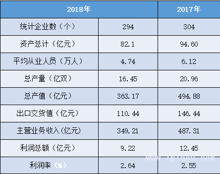 統(tǒng)計數(shù)據(jù)表明,總產值、資產總計、主營業(yè)務收入等數(shù)據(jù)均有較大下降,利潤率處于低值,用工人數(shù)減少。主要產區(qū)在揭陽,全年產量14.4億雙,占統(tǒng)計數(shù)據(jù)86%。