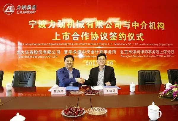 4月26日下午,寧波力勁機(jī)械有限公司舉行“寧波力勁與中介機(jī)構(gòu)上市合作協(xié)議”簽約儀式,力勁與光大證券股份有限公司、普華永道中天會(huì)計(jì)師事務(wù)所、北京市海問(wèn)律師事務(wù)所達(dá)成友好合作協(xié)議,努力完成寧波力勁機(jī)械有限公司注塑機(jī)項(xiàng)目滬市A股的上市!力勁集團(tuán)創(chuàng)辦人劉相尚先生、集團(tuán)董事韓婕女士、王新良先生及各合作單位領(lǐng)導(dǎo)等共同出席了本次簽約儀式。