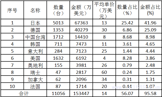 按貿(mào)易產(chǎn)品細分,2017年1~11月我國進口注塑機6671臺、金額6.82億美元,分別同比增長44%、40%;進口擠出機1037臺、金額3.35億美元,分別同比增長34%、13%;進口吹塑機251臺,金額1.49億美元,分別同比增長29%、22%。