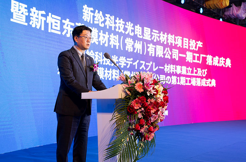 韓國科隆CPI事業(yè)部尹部長參加慶典并致辭,尹部長表示,韓國科隆工業(yè)秉承One&Only的經(jīng)營理念,在柔性O(shè)LED產(chǎn)業(yè)布局多年,需經(jīng)多次精密涂布的光學(xué)透明PI膜是全球首家具有可量產(chǎn)能力的企業(yè),預(yù)計(jì)到2020年將全面量產(chǎn)??坡≈匾暟l(fā)展中國市場,尋找潛在合作伙伴,新恒東精密涂布線的竣工為合作共贏提供了可能,為OLED行業(yè)高速發(fā)展、產(chǎn)業(yè)鏈整合提供更穩(wěn)定的保障。